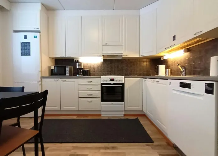 Spacious Apartment For 6 provides a fully-fitted kitchen with an oven and a dishwasher for guests. You will be just around the corner from the nearest bus stop - Kapulantie L.